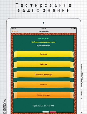 - обучение 1500+ слов происходит через флэш карты и разделены на разделы