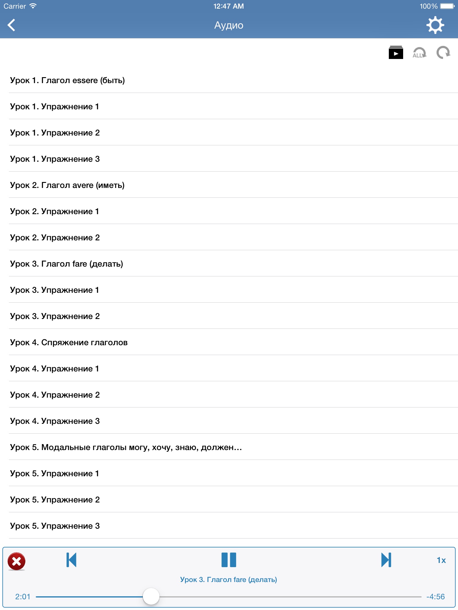 К упражнениям всегда есть полные ответы, так что вы можете свериться как с текстом, так и прослушать правильные ответы на итальянском языке, следя глазами по тексту.