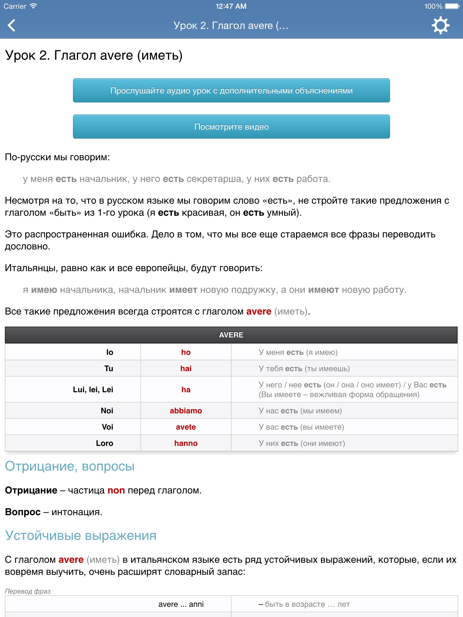 Учила итальянский с Вашим приложением, так как предложили там работу! Теперь свободно общаюсь с коллегами. Конечно, ещё подтянулась сама, но основу заложило это приложение! Все понятно и доступно. Спасибо, определенно 5!!!
