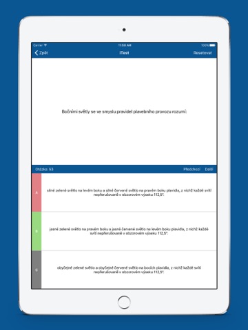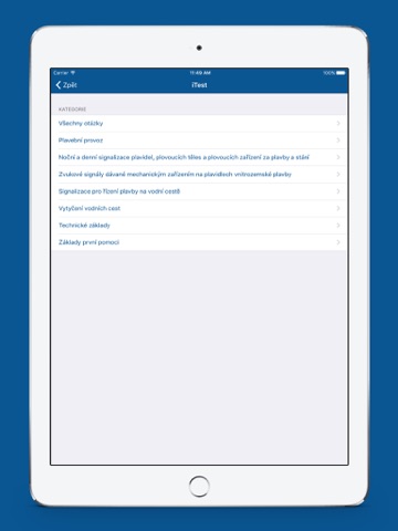 Aplikace iTest - Lodní průkaz Vám pomůže při přípravě na písemnou část zkoušky pro získání průkazu Vůdce malého a rekreačního plavidla (kategorie M). Kromě samotného testu, který je sestaven přesně podle kriterií oficiální zkoušky, si můžete otázky procházet podle kategorií, prohlížet chybné odpovědi nebo sledovat svůj postup v jednoduchých statistikách.