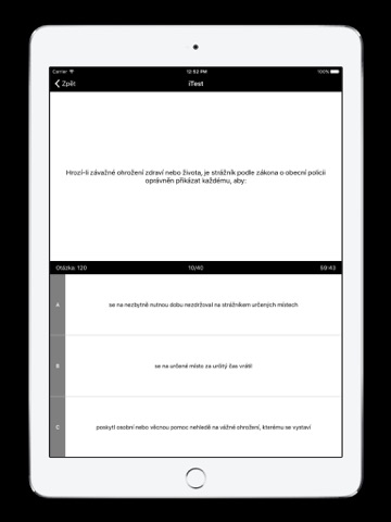 Aplikace iTest - Strážník Vám pomůže při přípravě na písemnou část zkoušky pro ověřování odborných předpokladů čekatele a strážníka. Kromě samotného testu, který je sestaven přesně podle kriterií oficiální zkoušky, si můžete otázky procházet podle kategorií, prohlížet špatné odpovědi nebo sledovat svůj postup v jednoduchých statistikách.
