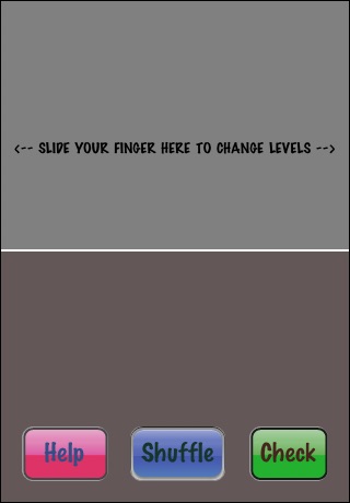 iTint Lite allows you to test your ability to match the brightness of two different screens, simulating the use of the full iTint app. Slide your finger on the top half to change the brightness level to match the level of the bottom. Left to make darker, and right to make brighter. When you think you have close match, press the Check button to see how close you are. If you can get less than 5% you are doing well. Press the Shuffle button to select another brightness level. The bottom half can take on a slight color tint, but the top will always be gray. If you do well on this test, then you you have the abliity to operate the full iTint app.