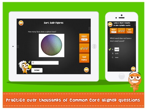 ‣ "A terrific app that covers a lot of ground concept-wise. This app combines a no-frills approach to content while still providing the user with an exciting learning experience. The mascot is adorable and keeps kids on task with lots of encouragement and there is a lesson summary available when needed."