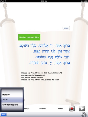 Also includes the Shehecheyanu and parent blessings for a child, plus video demonstrations of putting on a tallit, and participating in the aliyah process.