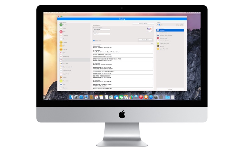iTracking is the app for your Mac that lets you know at any moment the status of your shipments with the major couriers and postal services in the world.