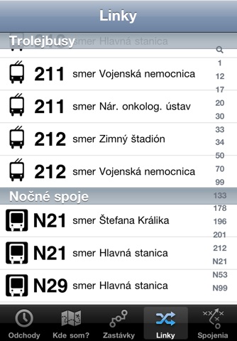 ● rýchle zobrazenie aktuálnych odchodov z najbližších zastávok,