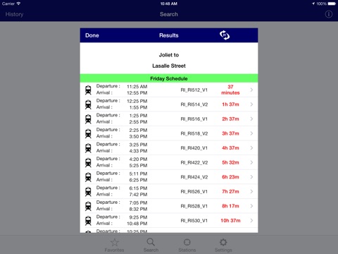 No need for a cellular or WiFi connection to find schedules, they are stored right on your device!