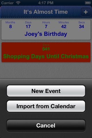 Ever wonder how long until your next vacation, how many shopping days until Christmas, or how long until your next birthday? Well, now you can have that information at your finger tips. You simply enter the date and time of the event of interest and watch the seconds tick away!