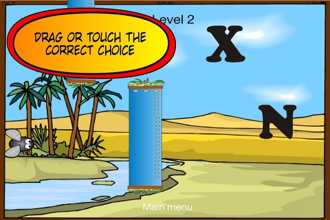 Letters of the alphabets are displayed, you use your finger to move a fun image to touch the correct letter or image.