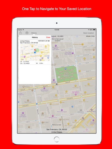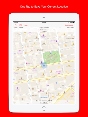 Save your current location for later use. Never forget where is your car or any particular place. The shows and save the address, longitude, latitude and altitude of your current location.