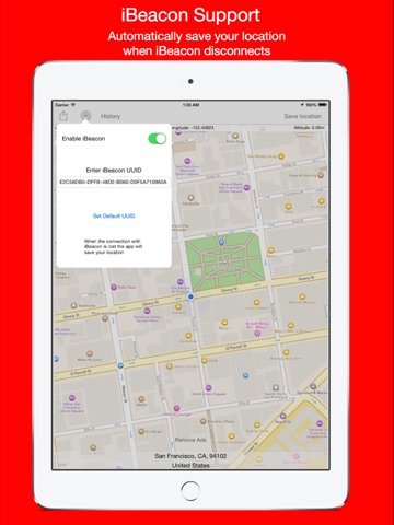 - You can place a beacon anywhere you want like your car. When you leave your car your current location will automatically saved. (Purchase of iBeacon is required)