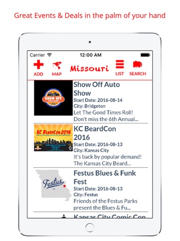 Discover Events and Deals, and share with friends, each Event and Deal listed.