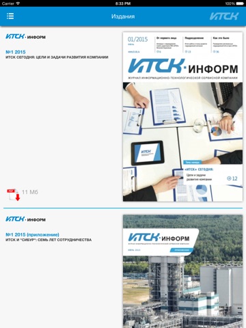 Вы сможете посмотреть презентации, узнать о вакансиях, реализованных проектах и скачать корпоративное издание. Приложение позволит Вам быть в курсе событий компании ИТСК.