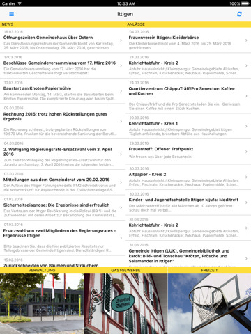 Alles Wissenswerte zur Gemeinde Ittigen: Gemeindewetter, Agenda, Gastronomie, Sehenswürdigkeiten, Anlagen, Hotels, Vereine, Verwaltung, Abfallsammlungen, Politik. Mit integrierter Kartenfunktion, automatischer Routen- und Distanzanzeige, integrierter Anruf- und E-Mail-Funktion, automatisch aktualisierten Inhalten und integriertem QR-Scanner. Auch offline lauffähig. Zu Online-Zeiten Push-Mitteilungen und integriertes eGovCenter mit Online-Schalter, GA-Reservationssystem und zentralem Benutzerkonto.