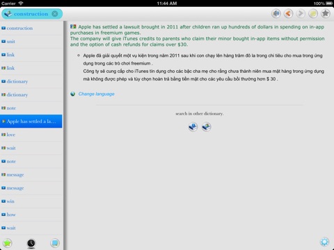 iTudien is a comprehensive dictionary with more than 1 millions entries and allow to take beautiful sticky notes of important words, It also support translate words and phrases between 64 languages using Google Translate