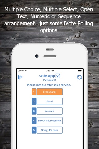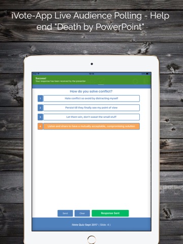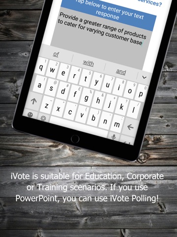 The iVote-App is used by participants to respond to the polling slides created with the iVote PowerPoint Add-in. The iVote Add-in seamlessly integrates with PowerPoint allowing for easy creation of question slides.