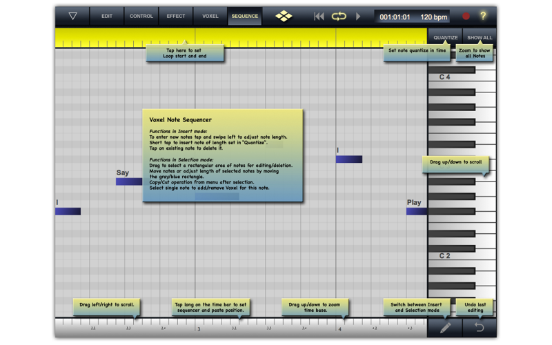 Sequencing is a pain and exchanging voxels with the iPad version is pretty much impossible, unless Ive missed some icon that I need to press. = <