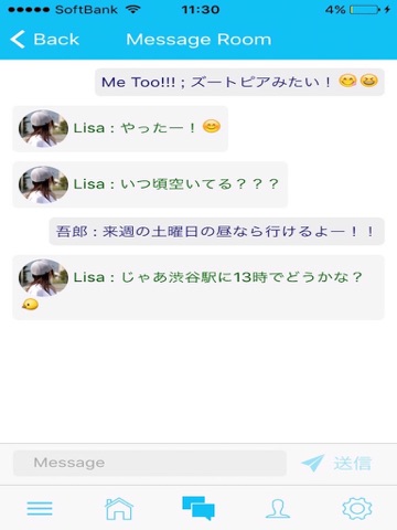 ・Likeボタンを押すと、アプリ内チャットで通知され、そのまま予定調整の話に入ることができる。