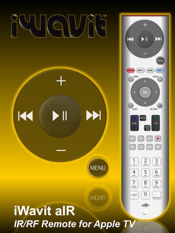The iWavit aIR app turns your iOS device into an IR/RF Remote for the controlling the Apple TV box. The app is also a Universal IR learning remote, so that you can use this together with the iWavit Basic Attachment to learn the IR codes from your old remotes.