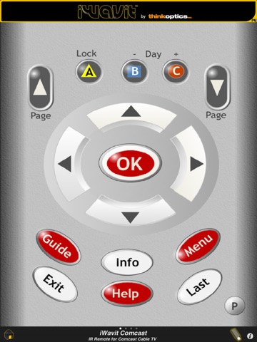 When you press the buttons on the iWavit Comcast screen, IR signals will be emitted from the front of the iWavit. You will be able to use this virtual remote app much as you would a regular Comcast IR remote.