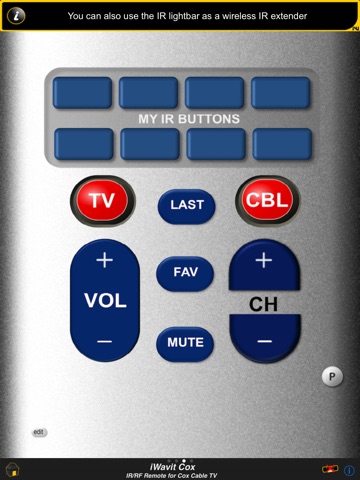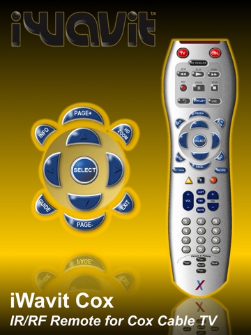 The "iWavit Cox" app is part of a family of iWavit Virtual Remotes for Major-Brand electronic devices. For those who wish to create their own custom Remote Controls, we have created the Ultimate Remote Control app called Tabula Rasa (or Tabula Rasa HD for the iPad). With this app you can create your own remotes, download remotes, upload remotes to share them, search our IR database or learn IR codes directly from your old IR remotes. You can even create macros for embedding multiple functions inside a single button. Another unique feature, is that you can use the iWavit for Plug & Play control of your computer using wireless USB Keyboard strokes, voice control, or through the patented DirectPointing air-mouse technology built into the iWavit.
