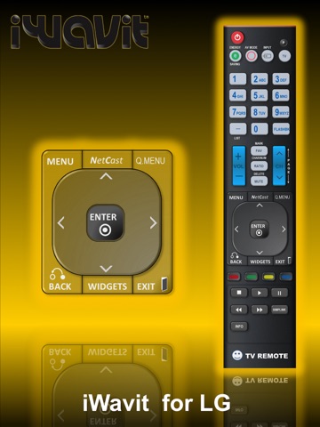 The "iWavit LG" app is part of a family of iWavit Virtual Remotes for Major-Brand electronic devices, and PCs and Macs. For those who wish to create their own custom Remote Controls, we have created the Ultimate Remote Control app called Tabula Rasa for the iPhone and iPod touch, and Tabula Rasa HD for the iPad.
