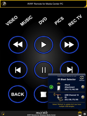 This app turns your iPhone/iPod touch/iPad into the ultimate RF/IR Remote for controlling Windows Media Center. There is no other Remote Control like it in the world.