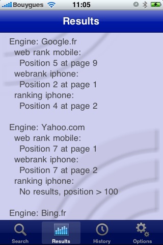Cette application est un outil de positionnement sur les moteurs de recherche, indispensable pour le bon référencement de votre site web. Elle fonctionne avec les moteur de recherche classiques (Google, Bing, Yahoo...)