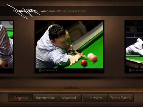 Although never winning the World Title, Jimmy White has always been the fans favourite and through this app you can see a little into the mind and character behind the fantastic sportsmen - through an exclusive and rare interview with Michaela Tabb. Jimmy talks in detail about what drives him, his 6 World Final matches and of course Snooker legend Alex Higgins