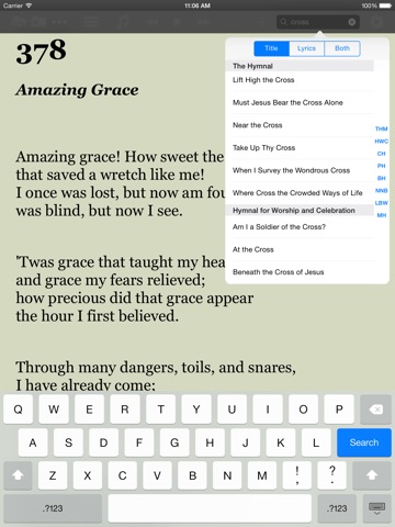 Overall a great app with a huge database, the piano on the MP3 files is beautiful. This app can make a huge difference for Christians caught up in the rat race! Some suggestions: 1. To allow the music to play in the background or when you turn off the device would make a huge difference (and waste less batteries). 2. To include a song repeat option in the settings. 3. A less important point: to allow user to upload their own photos for the MP3 background. Thanks!