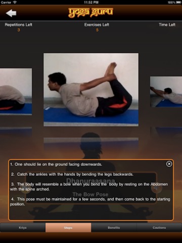 Yoga Guru is an extensive program which gives you a platform to live Yoga everyday and attain physical discipline, self awareness and mental peace. It acts as a personal trainer which guides you to practice Yoga the way it should be practiced.