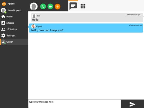 Apizee mobile application brings all Apizee features for real-time entreprise collaboration and customer engagement management on your mobile device :