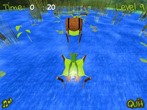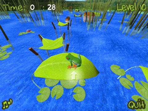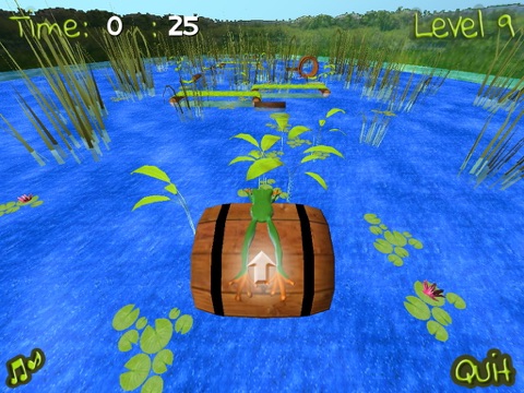 You must jump on water lilies, tree trunks, leaves and other obstacles to pass across the lake without falling into the water.