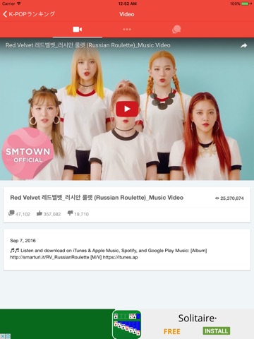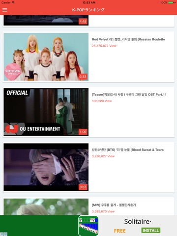 KPopが無料で聴き放題のアプリ!今週、最新のK-POPのランキングをチェックできます。そのままYoutubeの音楽を聴けるアプリです!