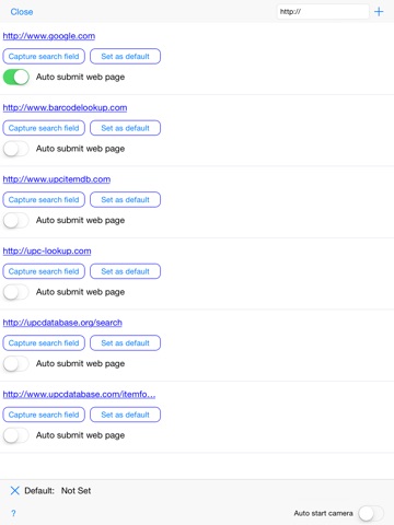 The J9 Reader application allows you to define your own web page or urls to load then by setting the focus to the field you would like to fill in with the results of a barcode scan, you can click Scan & Enter which will enable the camera for barcode scanning.