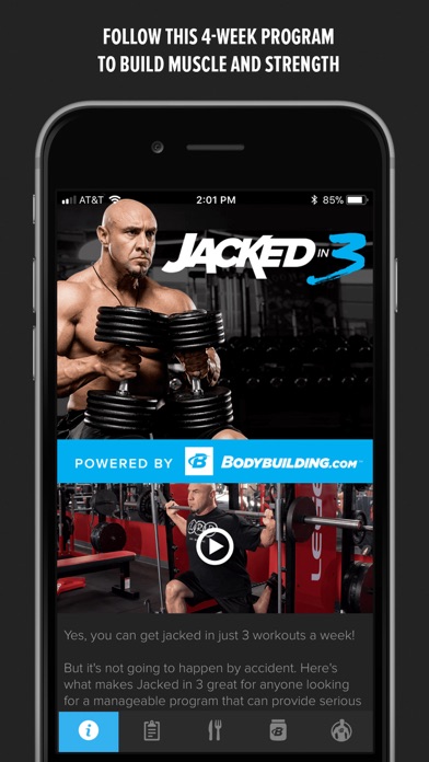 No need to spend hours in the gym day after day, with Jacked in 3, you’ll learn exactly how to work out so you can build muscle, get strong, and improve your overall health and fitness in just three days of training per week. Jacked in 3 includes full workout and exercise videos, grocery shopping lists and diet advice, and workout tracking. Purchasing this app also provides access Bodybuilding.com All Access. Through All Access, you’ll get 20+ other workout apps and 50+ workout plans.