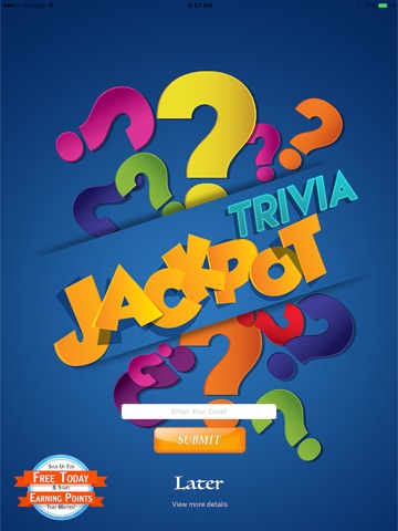 Play Games Earn Points Win A Vacation. A NEW "Jackpot Trivia" game integrated with a rewards program that lets you earn points as you play! Use these points to redeem instant rewards or to enter an exclusive travel vacation sweepstakes. Download and get started today! Have more questions? Watch this 60 second video on youtube! https://www.youtube.com/watch?v=OwYJHZQA7vo Are you tired of the same old trivia games? We were too and thats why we give you rewards for playing that keeps things exciting. More information at www.JackpotVacations.com Any questions? Email us. [email protected]