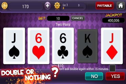 Jackpot Video Poker Game brings the FULL video poker experience everywhere you go. With much different video poker games, real card shuffling, and real paytables, youll have Las Vegas with you anywhere, anytime. Experience the BIG WIN excitement of Las Vegas Video Poker in the best FREE Video Poker Casino!