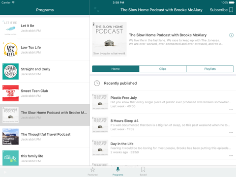 - Stream or download to listen to any clip