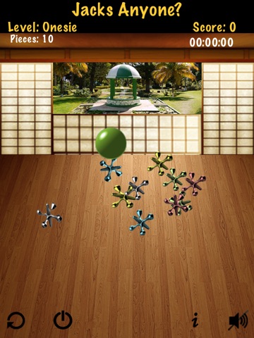 Jacks is a great and fun game that consists of ten jacks and a ball that is thrown in the air. There are many variations to the game but this app uses the NO BOUNCE gameplay. The player picks up the prescribed number of jacks before the ball falls and hits the ground. The player advances to the next level when all ten jacks have been removed per level (e.g. onesie, twosie, threesie, etc). The game is completed when a player successfully removes all jacks at the tensies level.