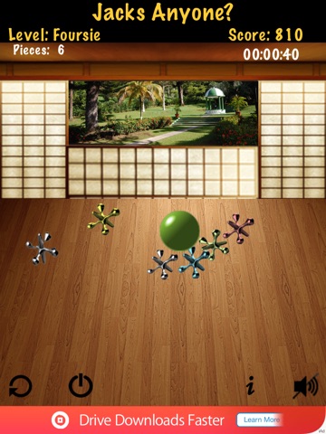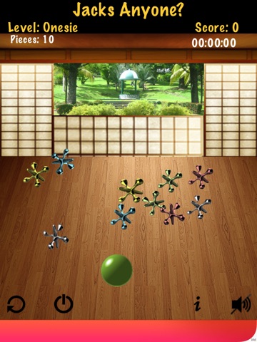 Jacks is a great and fun game that consists of ten jacks and a ball that is thrown in the air. There are many variations to the game but this app uses the NO BOUNCE gameplay. The player picks up the prescribed number of jacks before the ball falls and hits the ground. The player advances to the next level when all ten jacks have been removed per level (e.g. onesie, twosie, threesie, etc). The game is completed when a player successfully removes all jacks at the tensies level.