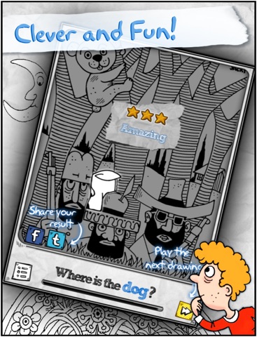 The app is nothing like the corny "find the hidden elements" apps that you so commonly see on the AppStore. Jackys "Where Is It?" is an original brain teaser game that has a special gameplay, story, art and design.