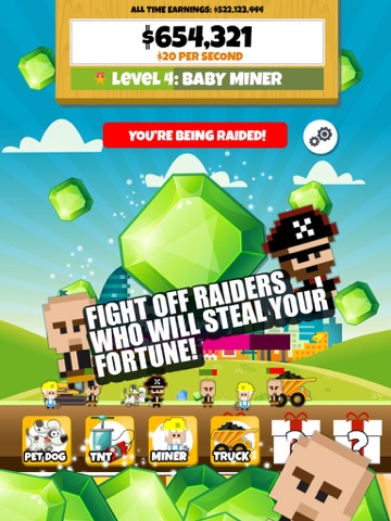 Tap on rocks to mine and buy miners or upgrades to level up and become the most successful mining entrepreneur of all time! Be careful though, raiders will try to steal from your idle empire with random attacks, but with all of your upgrades and bonuses – you’ll defeat them easily.