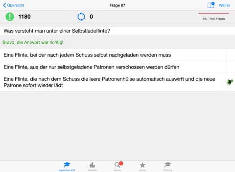 Die App eignet sich hervorragend zum lernen der schriftlichen Fragen zur Jägerprüfung und kann sie nur jedem angehenden Jungjäger empfehlen.