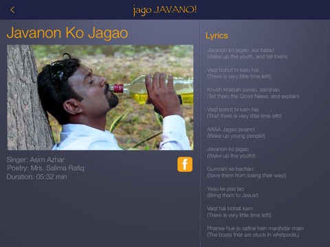 Urdu zuban men aj kal ke nao jawanon ke liye geet aur video. In men ham dekhte hain ke nao jawan kis tarha buri aditon ko aur nashon ko tark kar ke Khuda ki aur insan ki khidmat kar sakte hain. Do video Yesu Masih ki salibi maut ke bare men hain, aur ek video Thatha men shoot kiya gaya jo Yesu ke ji uthne ke bare men hai.
