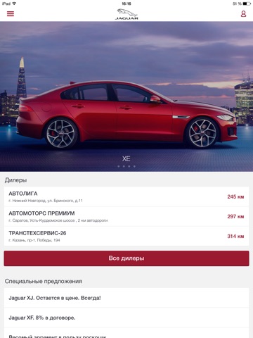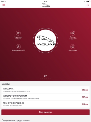 Личный кабинет для владельцев Jaguar Land Rover, позволяющий отобразить на экране мобильного устройства список