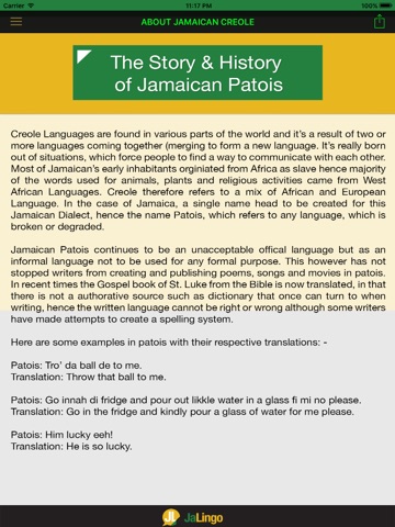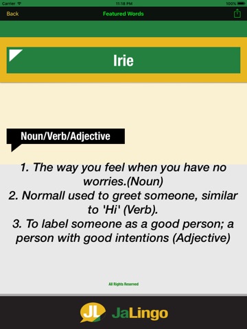 JaLingo is a Jamaican Dictionary/Translator developed on the iOS platform which allows the world to understand the Jamaican Dialect.
