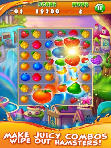 Switch the adjacent fruits.Make 3 or more with the same together to eliminate them.The backplanes will be eliminated too.Complete the goals showed on the top to win the levels before you run out of moves.