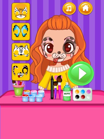 Fun face tattoo painting game, help the sweet girl Jane design a beautiful face painting. Dress up for her, add some funny item to the screen. Enjoy!