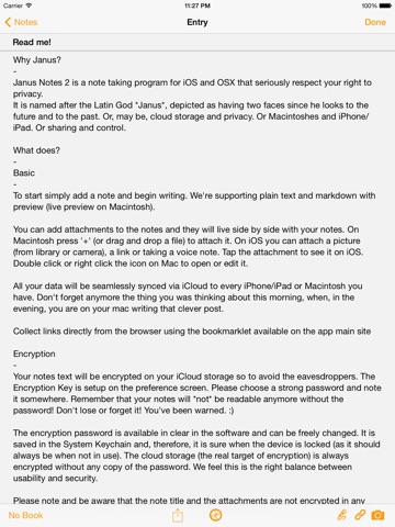 Janus Notes is an open source note taking program for iPhone/iPad (and Macintosh) for that seriously respect your right to privacy.
